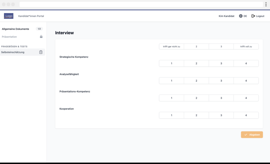 Durch die gezielte Freigabe können Kandidat*innen nicht mehr direkt auf alle Selbsteinschätzungen zurückgreifen. Dadurch wird verhindert, dass Kandidat*innen vor Bearbeitung der Übung deren Inhalte sehen können, wodurch Verzerrungen vermieden werden.