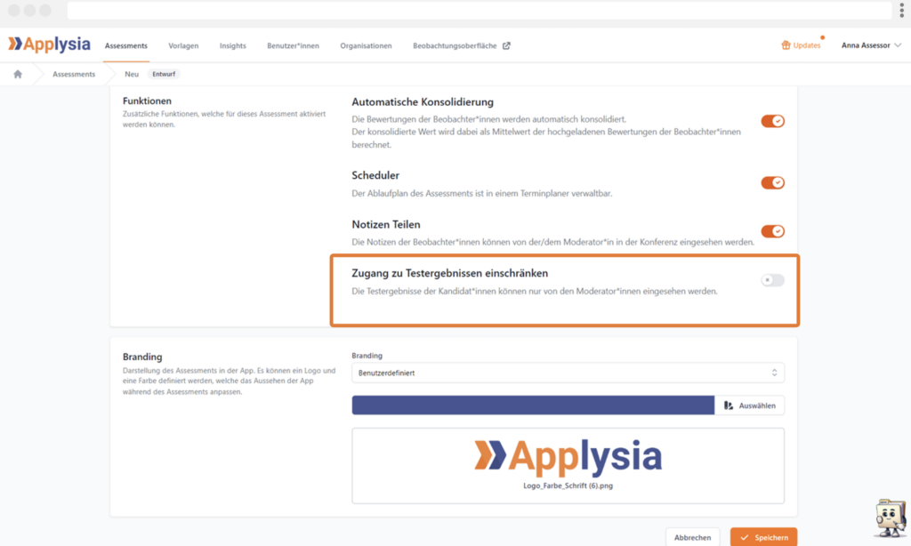 Ab sofort kann die Sichtbarkeit von Testergebnissen je nach Nutzer*innengruppe eingeschränkt werden: Diese neue Option ermöglicht es, dass die Test-Ergebnisse nur von Moderator*innen eingesehen werden können, wenn die Einstellung aktiviert ist. Die Funktion ist natürlich optional. Dies verbessert die Kontrolle über sensible Daten und bietet eine gezieltere Freigabe von Informationen.